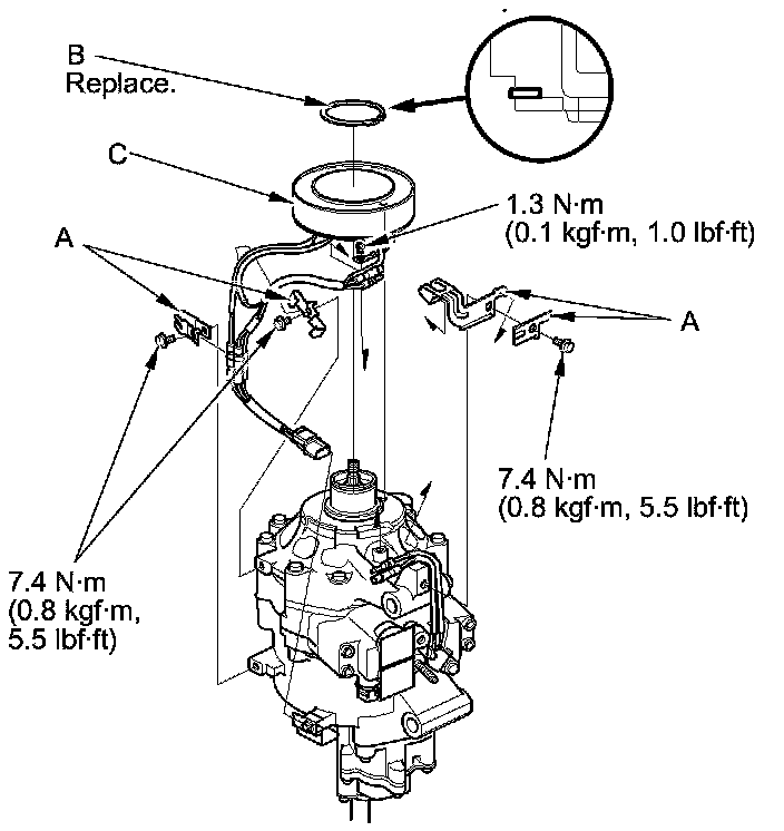 - Install the field coil with the wire side facing down, and align the boss on the field coil with the hole in the A/C compressor.