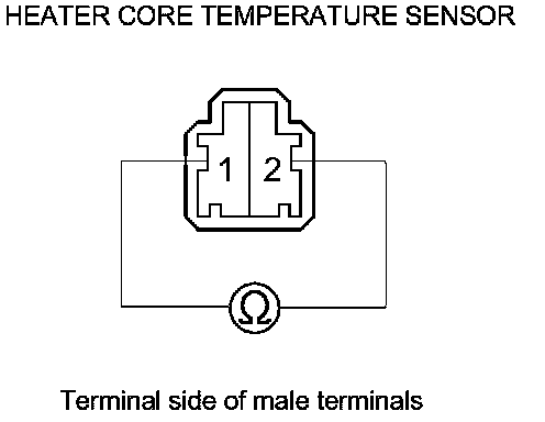 5. If the resistance is not as specified, replace the heater core temperature sensor Service and Repair.