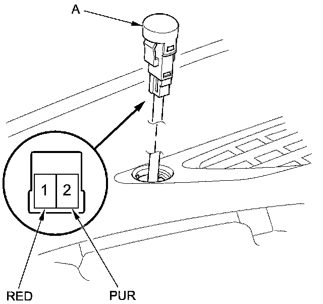 1. Remove the sunlight sensor (A) from the dashboard Service and Repair.