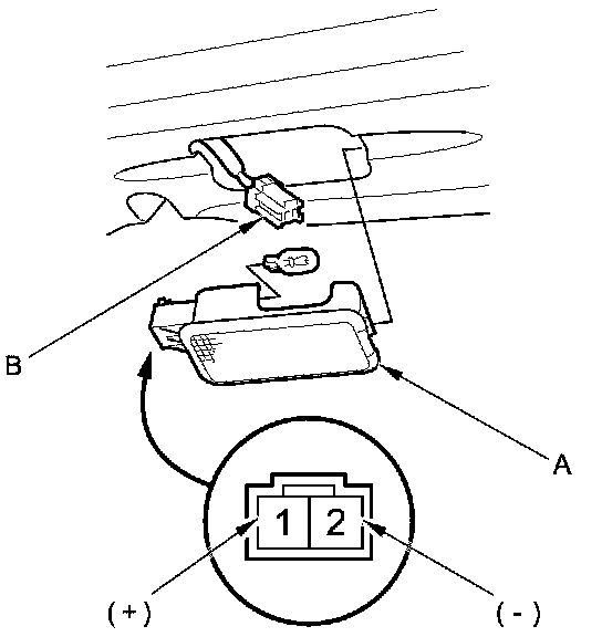 4. Check for continuity between terminals No. 1 (+) and No. 2 (-). There should be continuity. If there is no continuity, check the bulb. If the bulb is OK, replace the light.