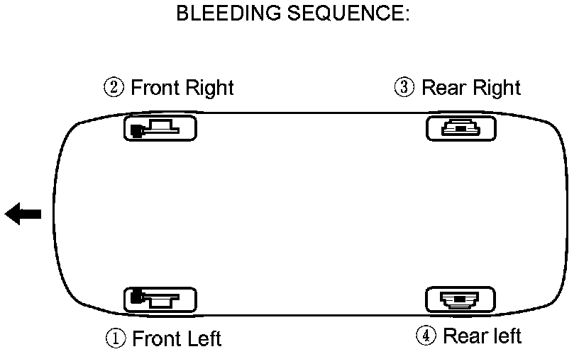 NOTE: Bleed the calipers or the wheel cylinders in the sequence shown.