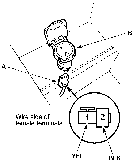 2. Disconnect the 2P connector (A) from the console accessory power socket (B).