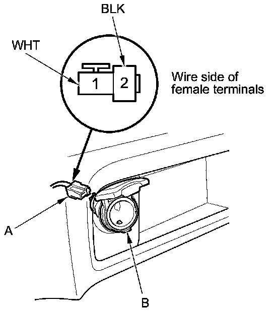 2. Disconnect the 2P connector (A) from the front accessory power socket (B).