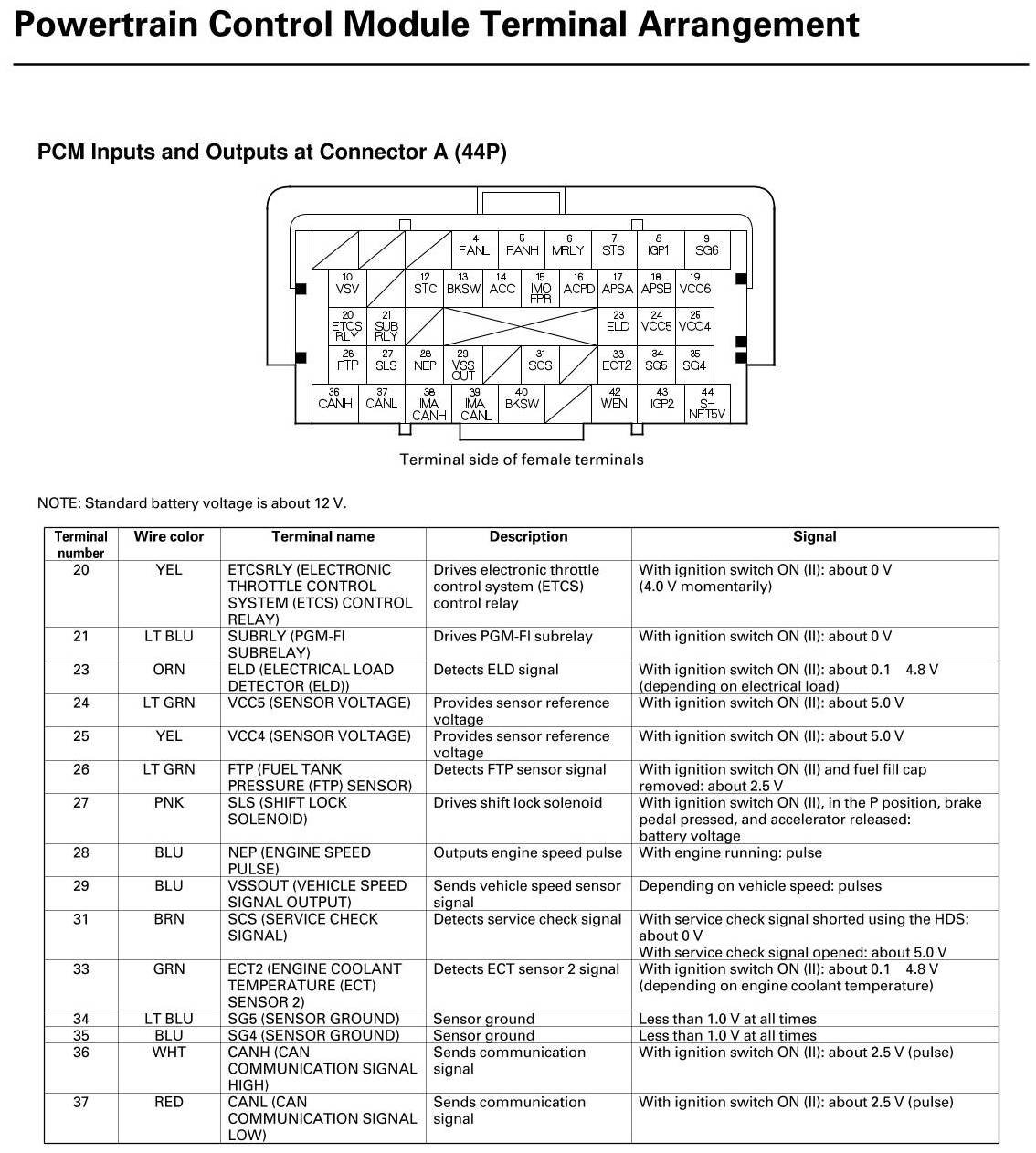 PCM Inputs And Outputs At Connector A