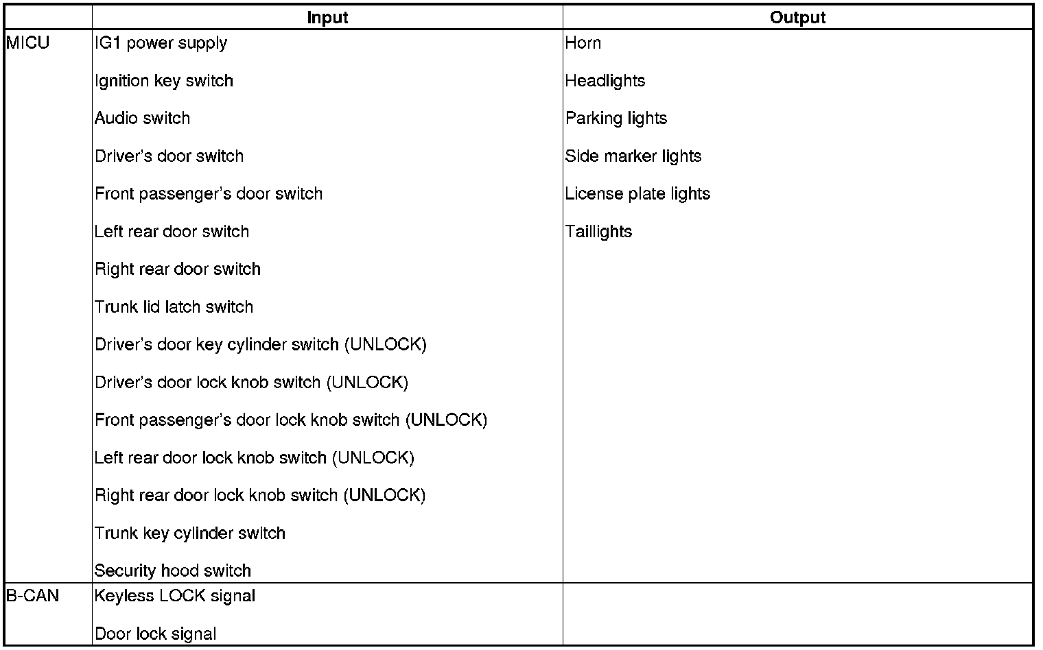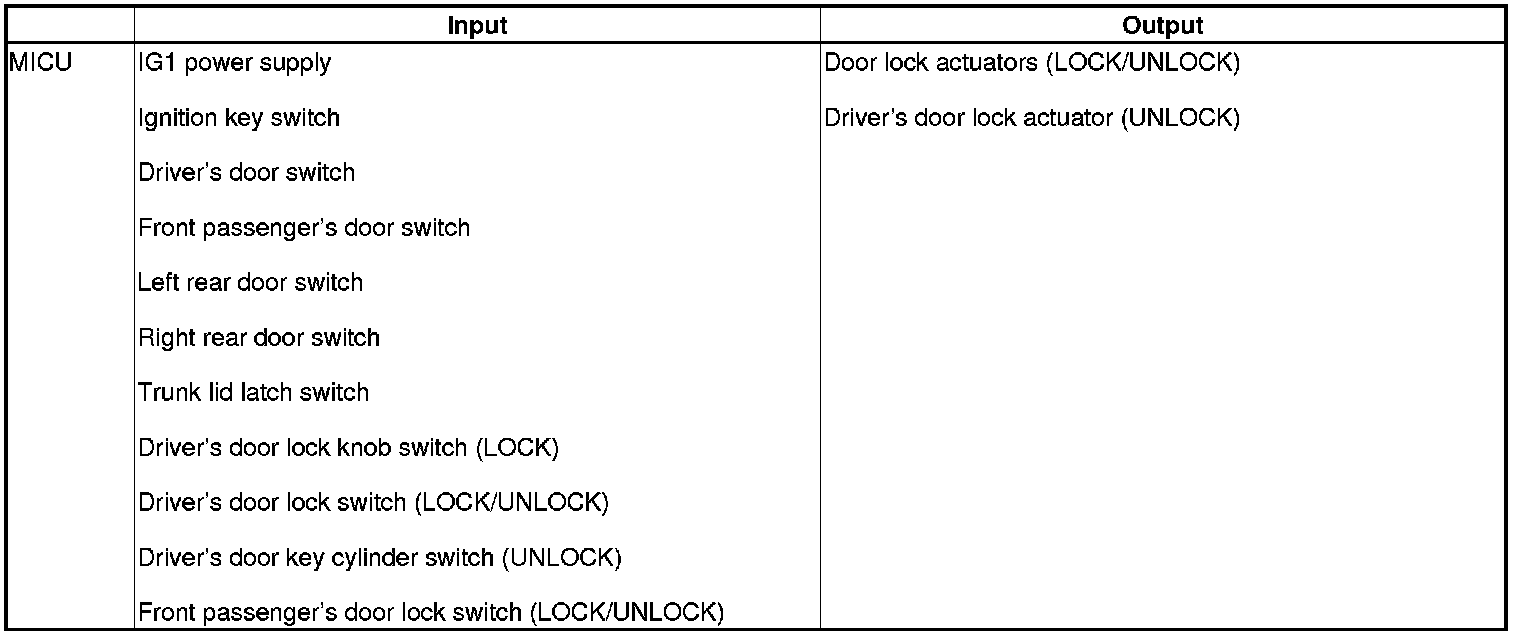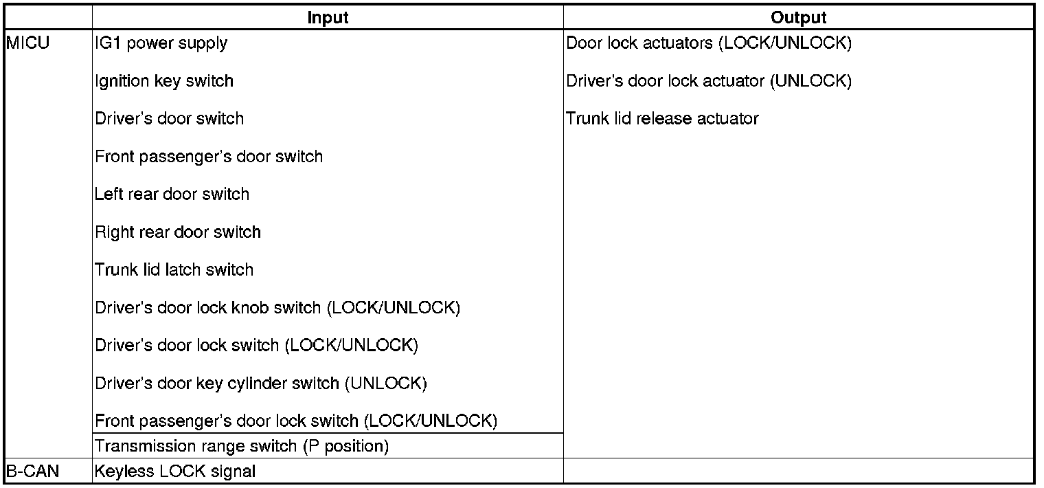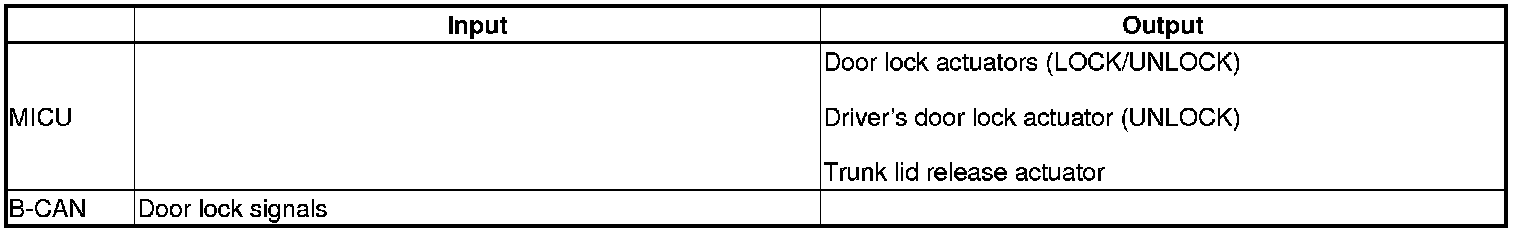 The MICU control of the door lock actuators is based on the B-CAN signals and inputs from each switch.