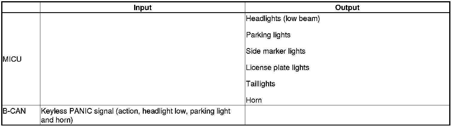 The MICU control of the keyless PANIC function is based on the B-CAN data.