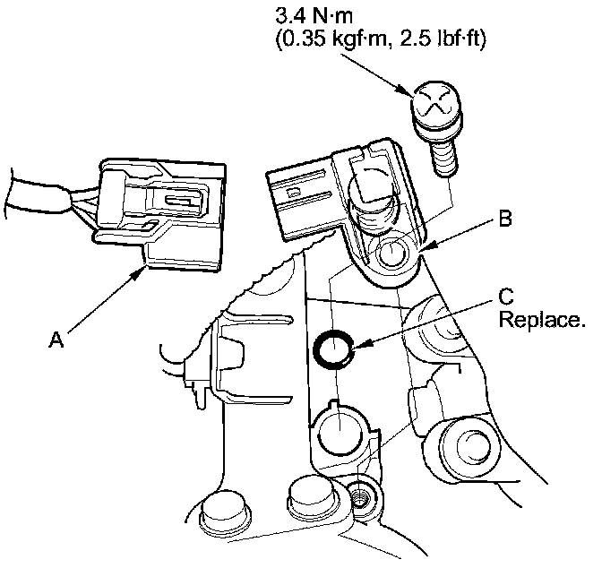 Install the parts in the reverse order of removal with a new O-ring (C).