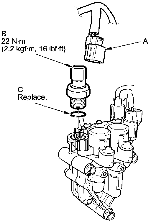 3. Install the parts in the reverse order of removal with a new O-ring (C).