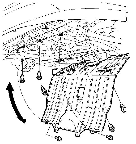 6. Remove the two bolts and five clips securing the front undercover, then lower the front undercover (from underneath the vehicle).