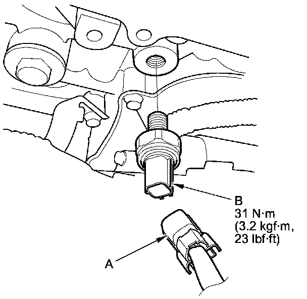 3. Remove the three bolts securing the intake manifold bracket B to the intake manifold chamber and the intake manifold, then disconnect the MAP sensor connector (A).