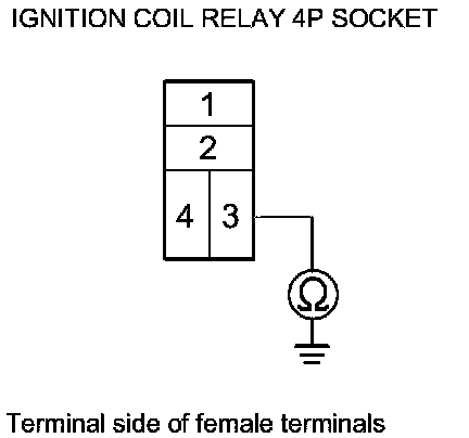 11. Check for continuity between ignition coil relay 4P socket terminal No. 3 and body ground.
