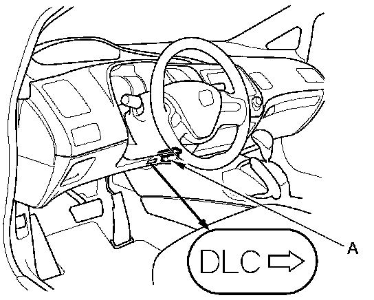 5. Connect the HDS to the DLC (A) located under the driver's side of the dashboard.