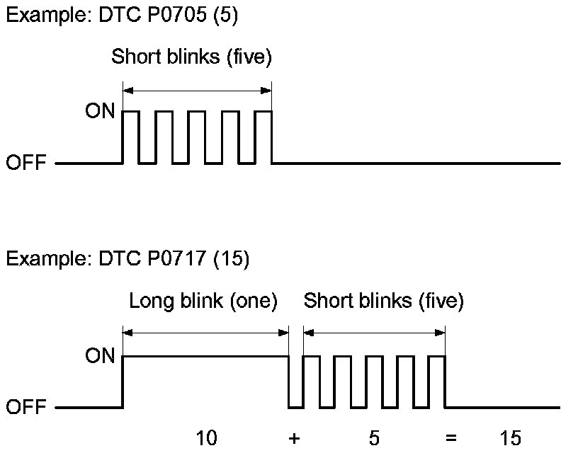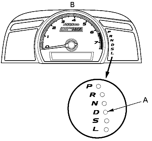 When the powertrain control module (PCM) senses an abnormality in the input or output system, the D indicator (A) in the gauge control module (tach) (B) will usually blink.