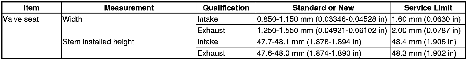 Valve Seat Specification(s)