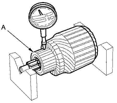 5. Measure the commutator (A) runout.