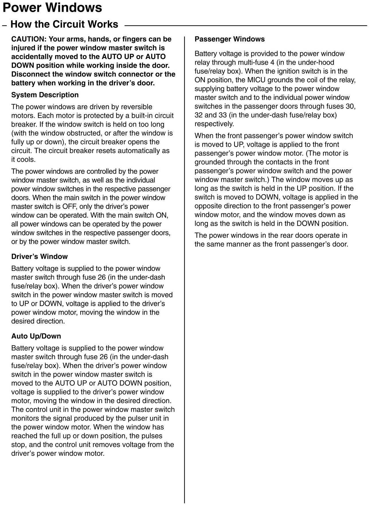 How the Power Windows Circuit Works