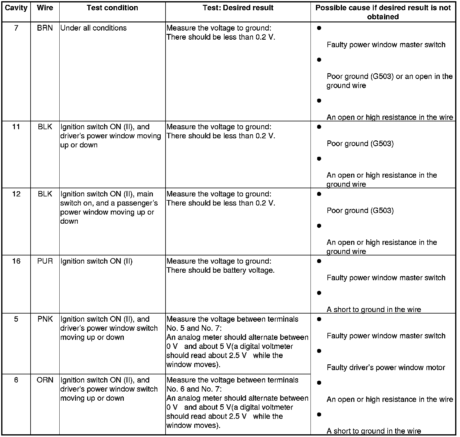 - If all the input tests prove OK, the control unit must be faulty; replace the power window master switch Power Window Master Switch Test/Replacement.
