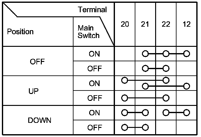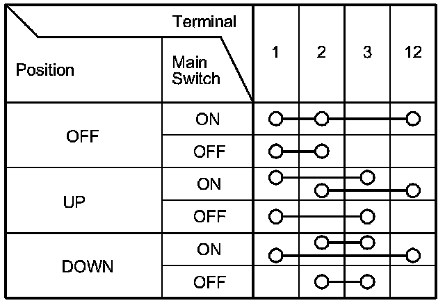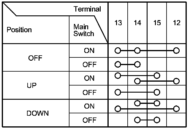 2. Check for continuity between the terminals in each switch position according to the tables.