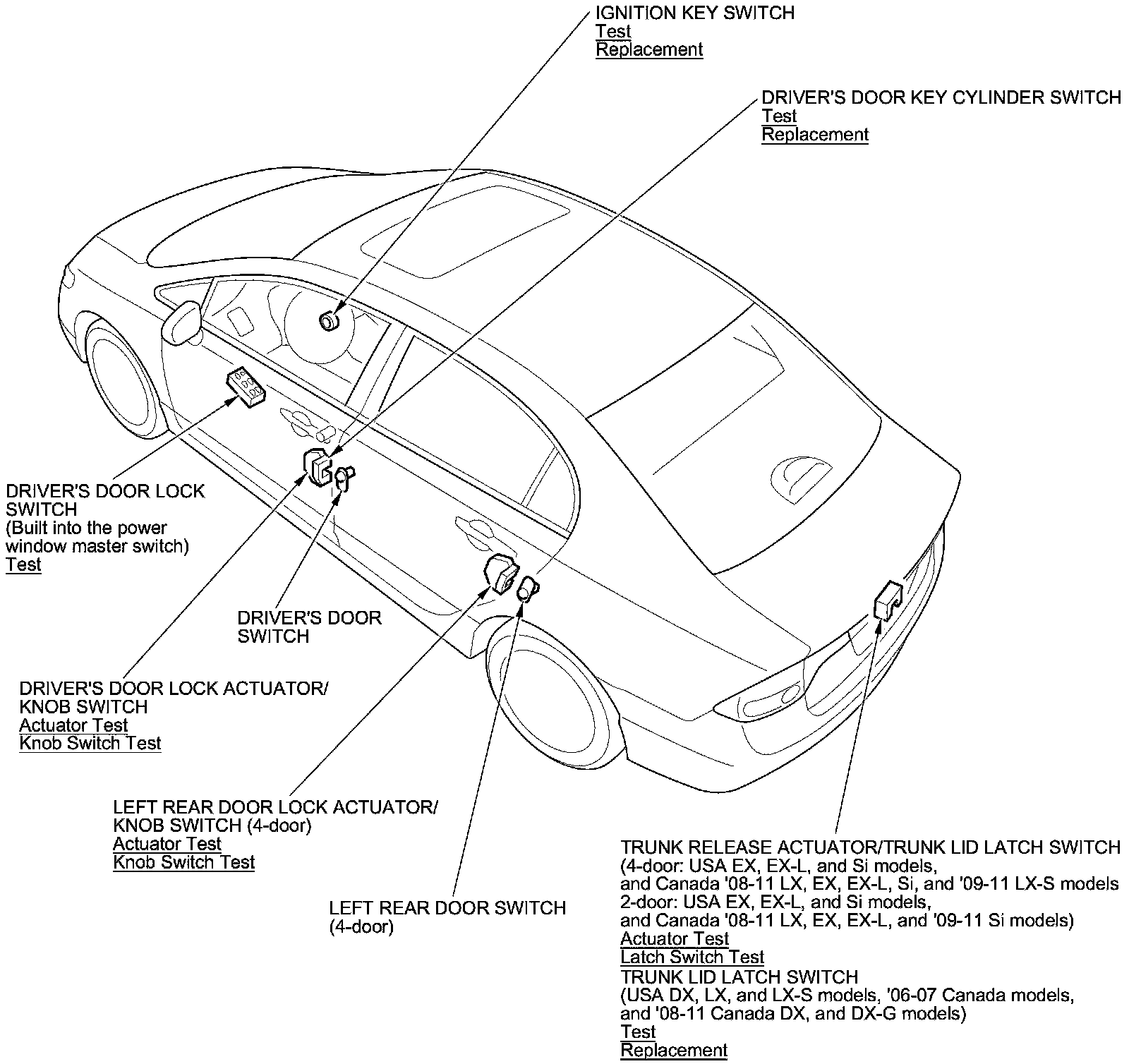 Keyless/Power Door Locks/Security System Component Location Index