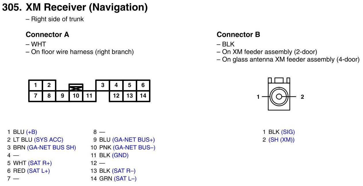 View 305 - XM Receiver Connector View (Navigation)