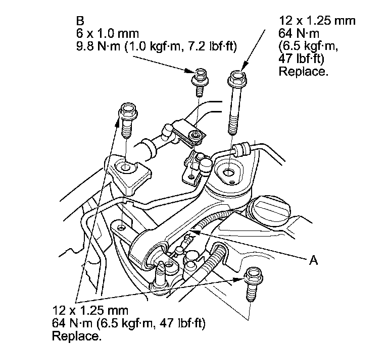 29. Install the upper torque rod (A), then tighten the new upper torque rod mounting bolts in the numbered sequence shown.
