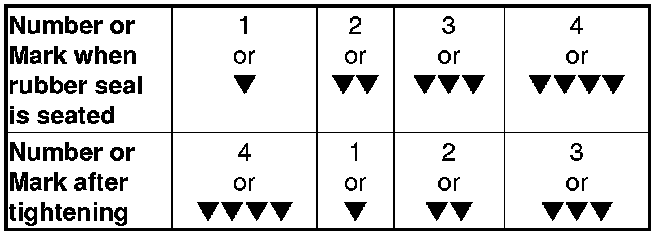 - Tighten the filter by turning it clockwise three numbers or marks from the one you noted. For example, if mark V is at the bottom when the seal is lightly seated, tighten the filter until the mark VVVV comes around to the bottom.