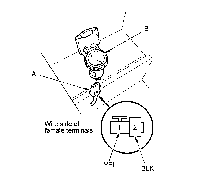 2. Disconnect the 2P connector (A) from the console accessory power socket (B).