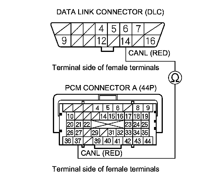 32. Check for continuity between PCM connector terminal A37 and DLC terminal No. 14.