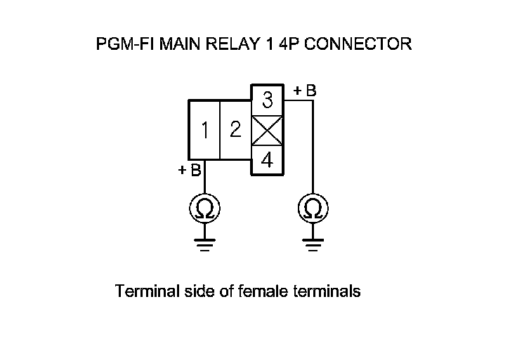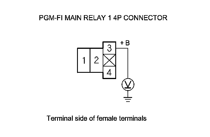 58. Measure the voltage between PGM-FI main relay 1 4P connector terminal No. 3 and body ground.