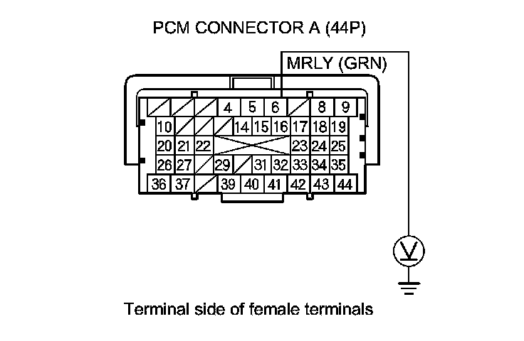 55. Measure the voltage between PCM connector terminal A6 and body ground.