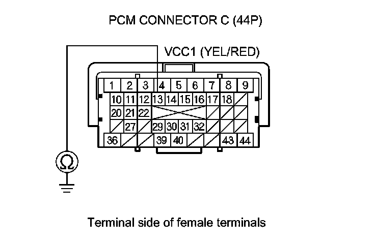 54. Measure the voltage between PCM connector terminal C36 and body ground.
