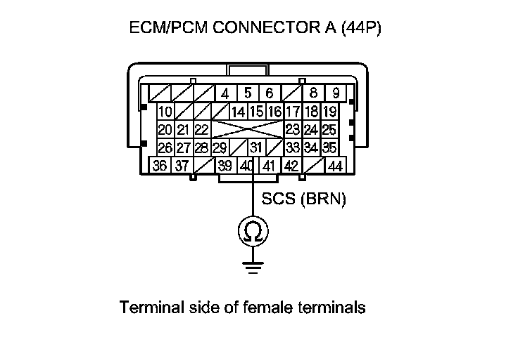7. Check for continuity between ECM/PCM connector terminal A31 and body ground.