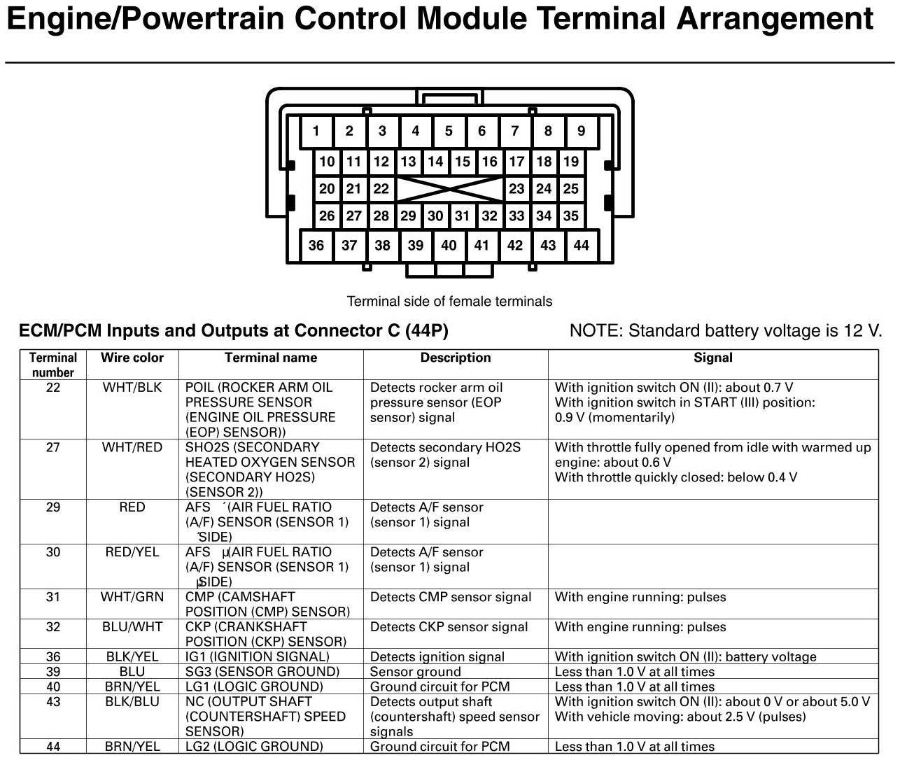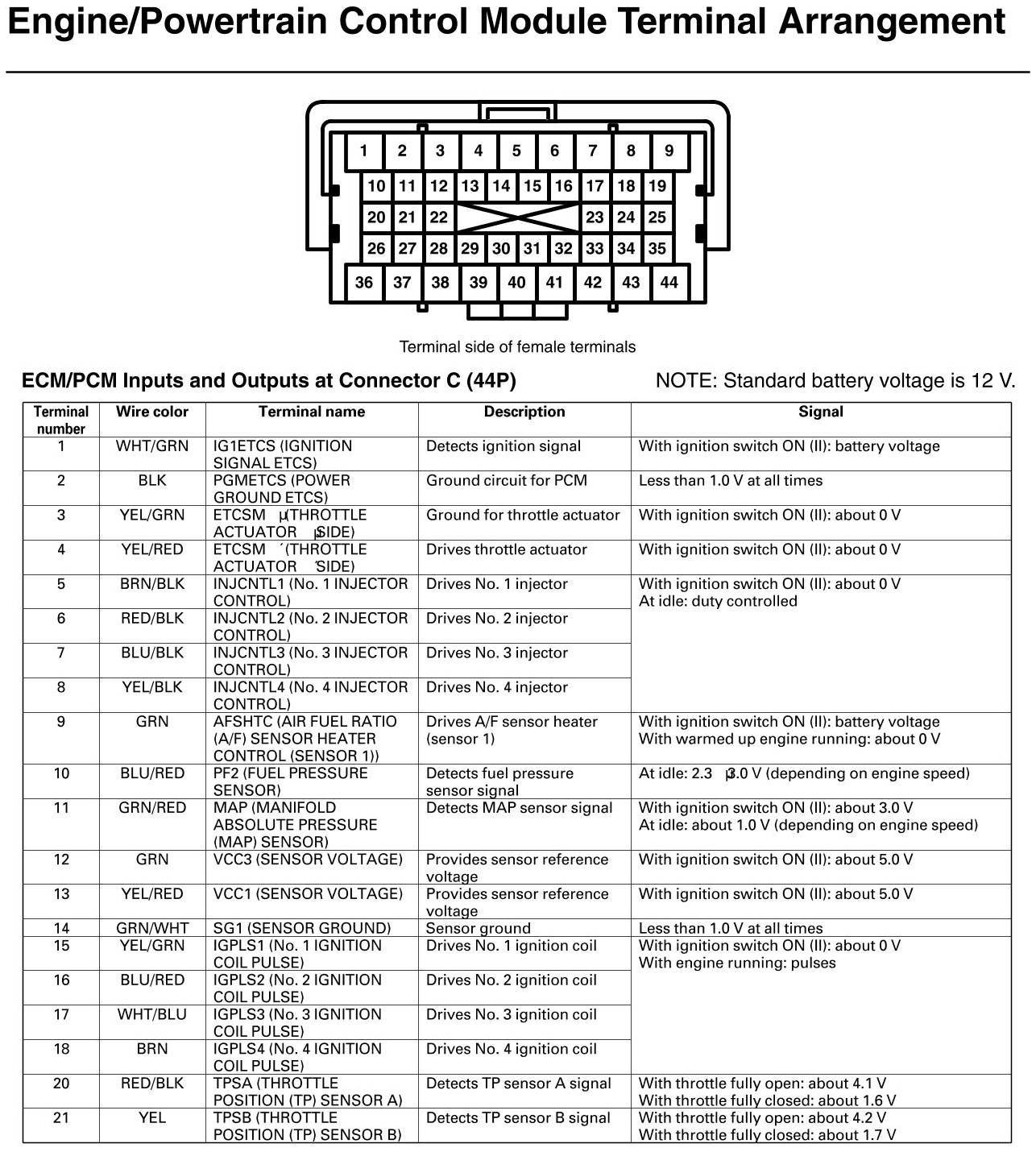 ECM/PCM Inputs And Outputs At Connector C (GX)