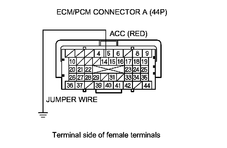 13. Momentarily connect ECM/PCM connector terminal A14 to body ground with a jumper wire several times.