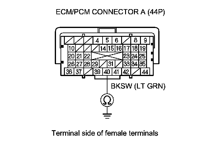8. Check for continuity between ECM/PCM connector terminal A40 and body ground.