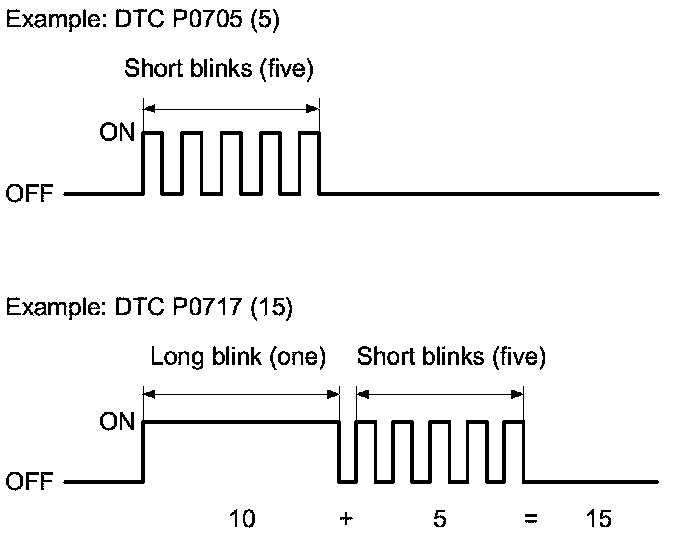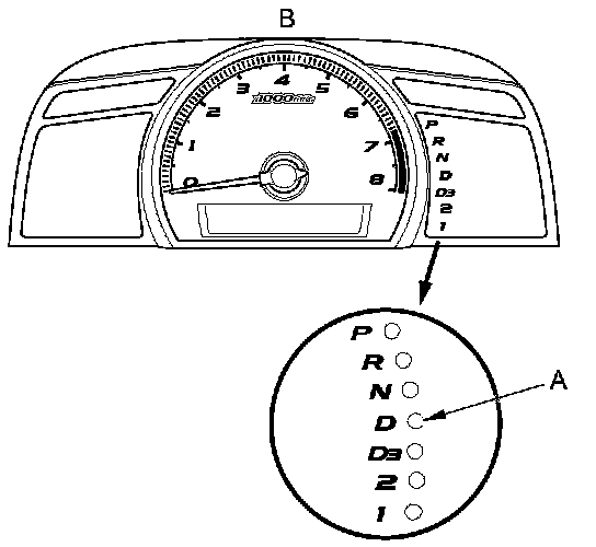 When the powertrain control module (PCM) senses an abnormality in the input or output system, the D indicator (A) in the gauge control module (tach) (B) will usually blink.