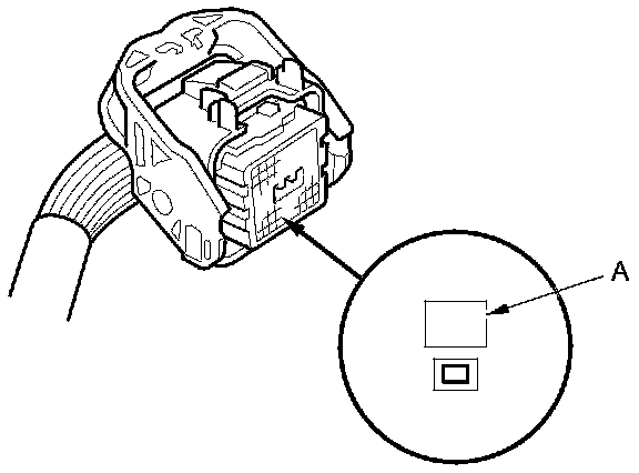 5. When diagnosis/troubleshooting is done at the PCM connector, use the terminal test port (A) above the terminal you need to check.