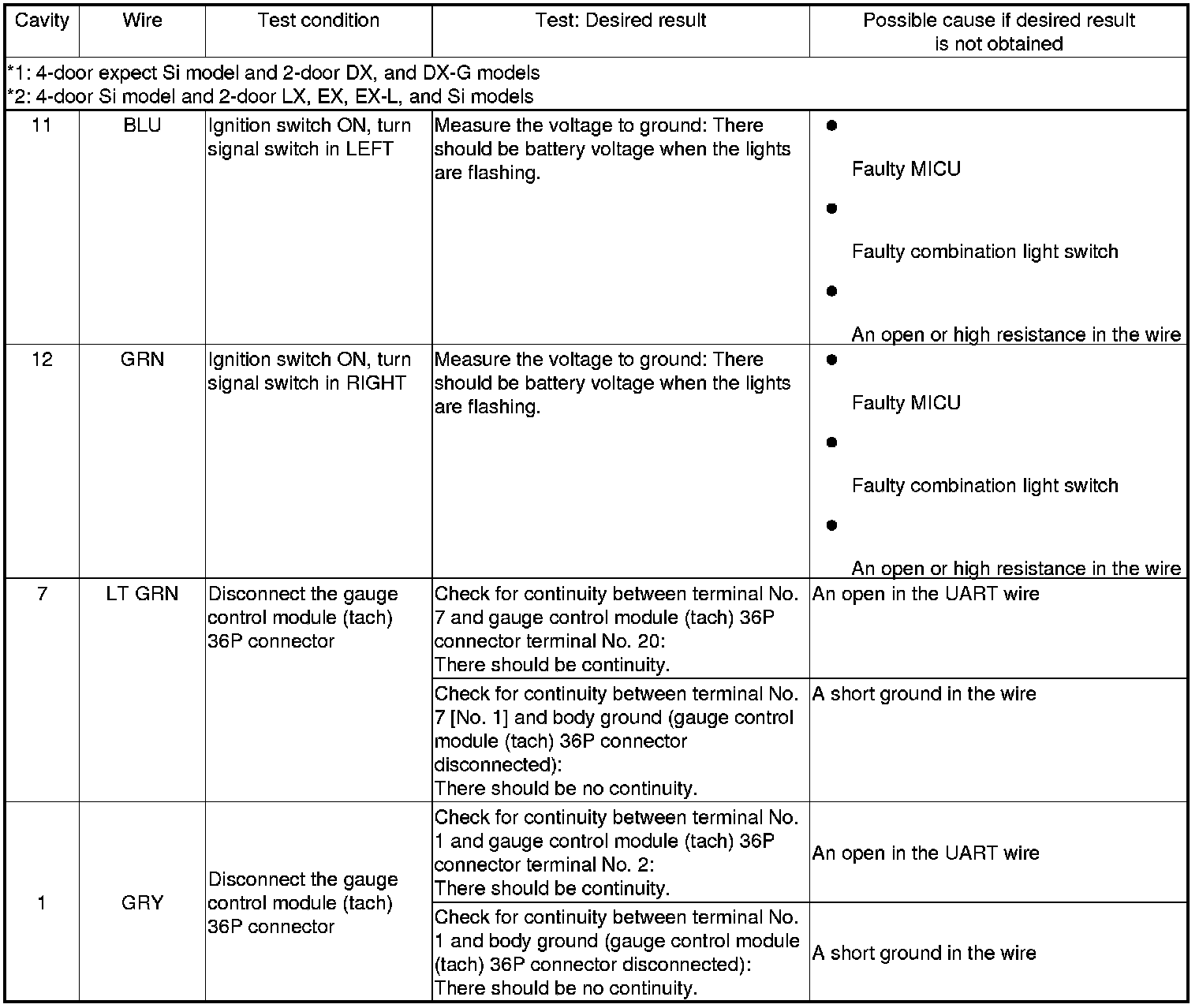 - If the input test proves OK, the gauge control module (speedo) must be faulty; replace it.