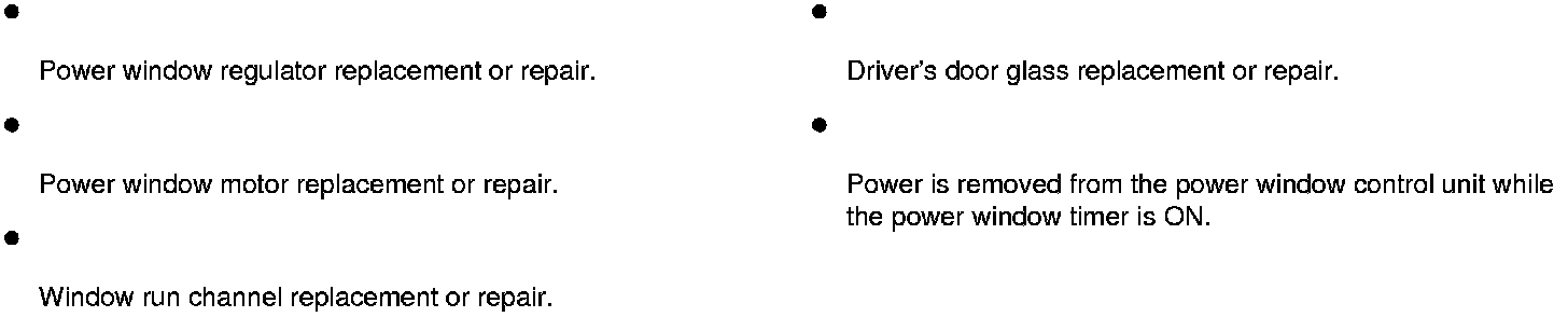 Resetting the driver's power window is required when any of the following have occurred: