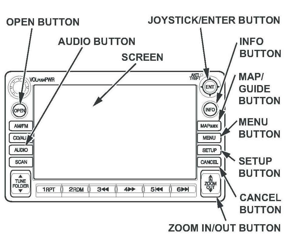 The buttons listed above are used in this bulletin. For more information on the button functions, see Getting Started in the navigation manual.