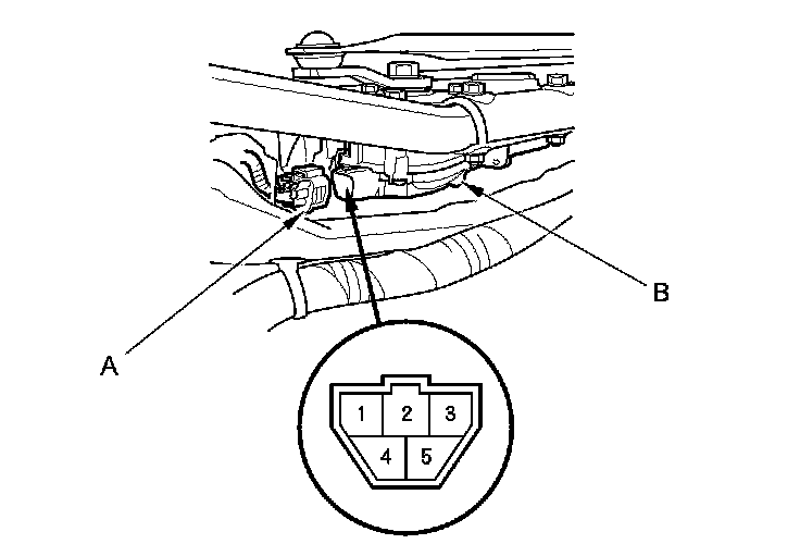 3. Disconnect the 5P connector (A) from the windshield wiper motor (B).