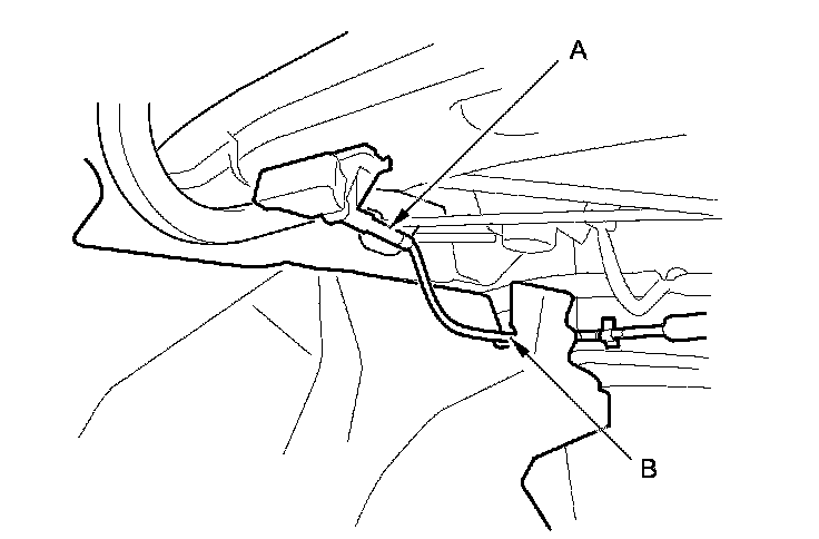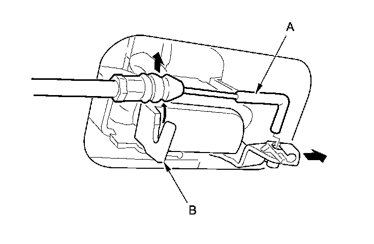 2. 2-door: Remove the rear seat-back release cable (A) out through the slit (B) in the trim panel.
