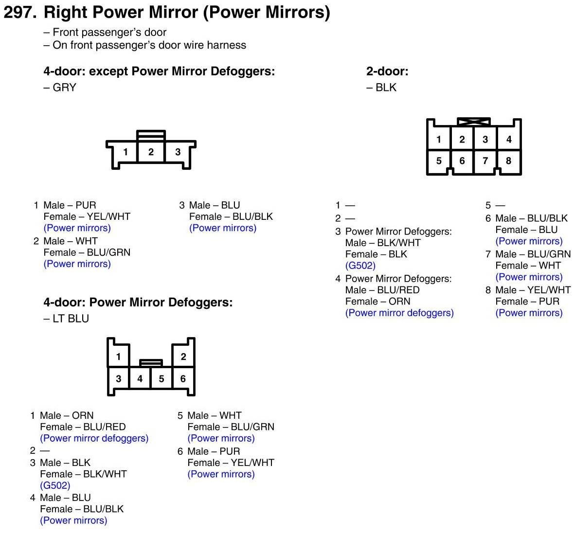 View 297 - Power Mirror, Right Connector View (Power Mirrors)