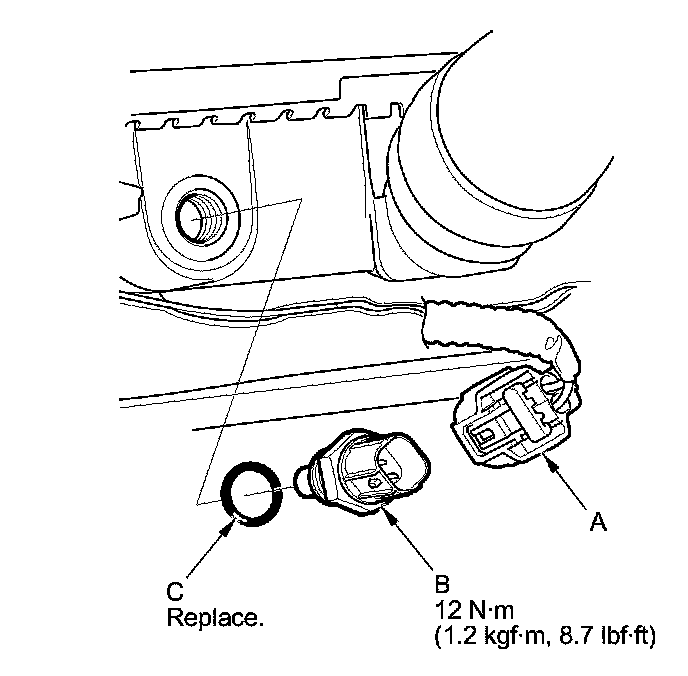 5. Install the parts in the reverse order of removal with a new O-ring (C), then refill the radiator with engine coolant Service and Repair.