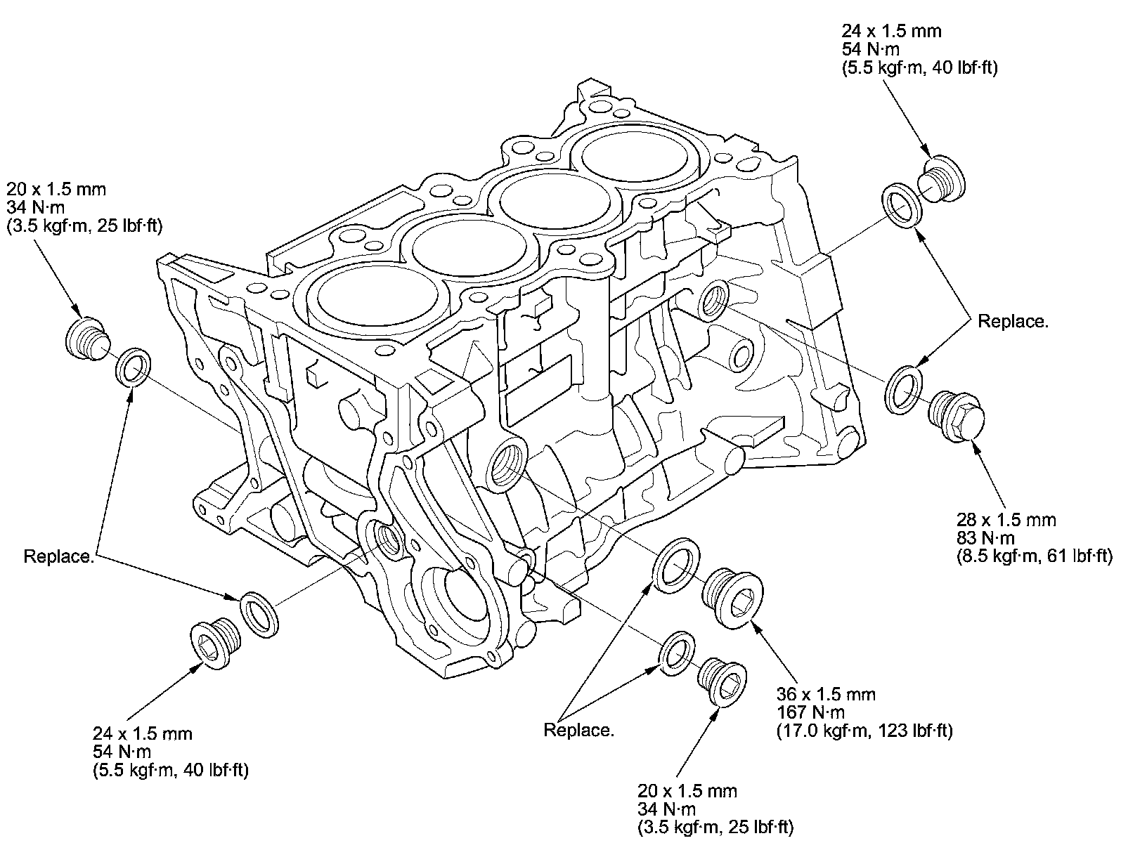 Engine Block Drain Bolt/Sealing Bolt InstallationNOTE: When installing the drain bolt and/or sealing bolt, always use a new washer.