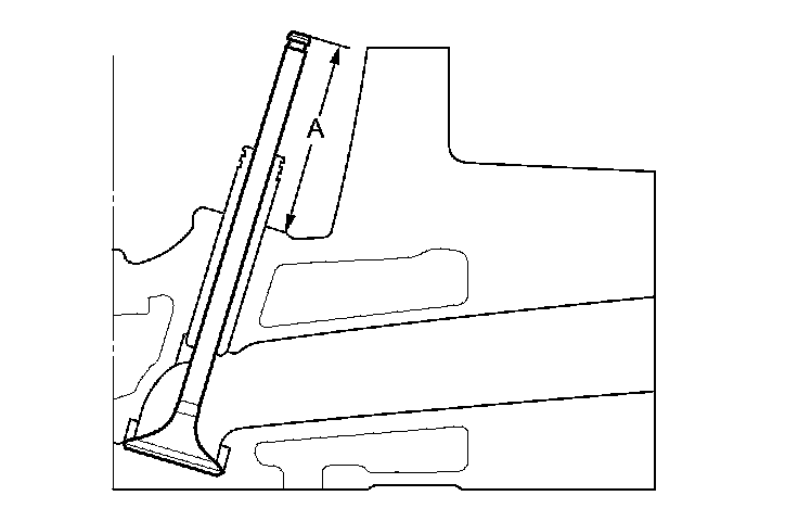 8. Insert the intake and exhaust valves in the head, and measure the valve stem installed height (A).