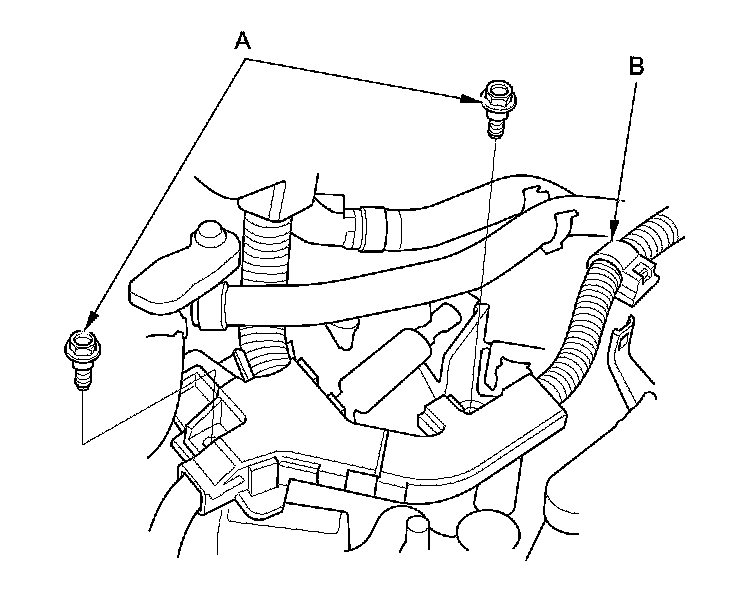 12. Remove the ECM/PCM cover (A), then remove the three bolts (B) securing the ECM/PCM.