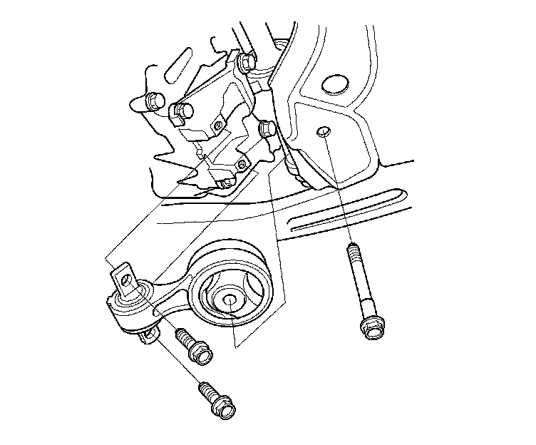 60. Remove the side engine mount bracket mounting bolt and nut.