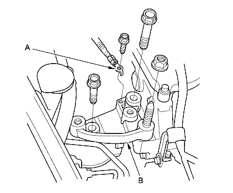 10. Remove the ground cable (A), then remove the side engine mount bracket (B).