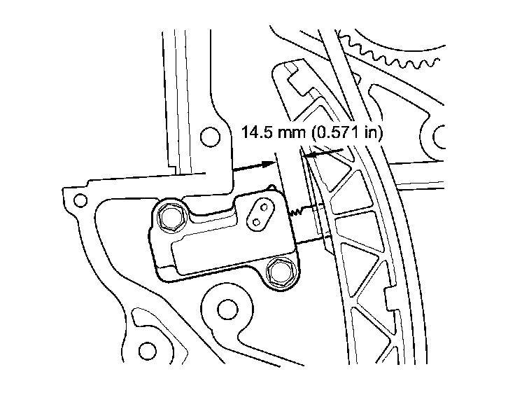 12. Measure the tensioner rod length between the tensioner body and bottom of the flat surface section on the tensioner rod. If the length is more than the service limit, replace the cam chain.